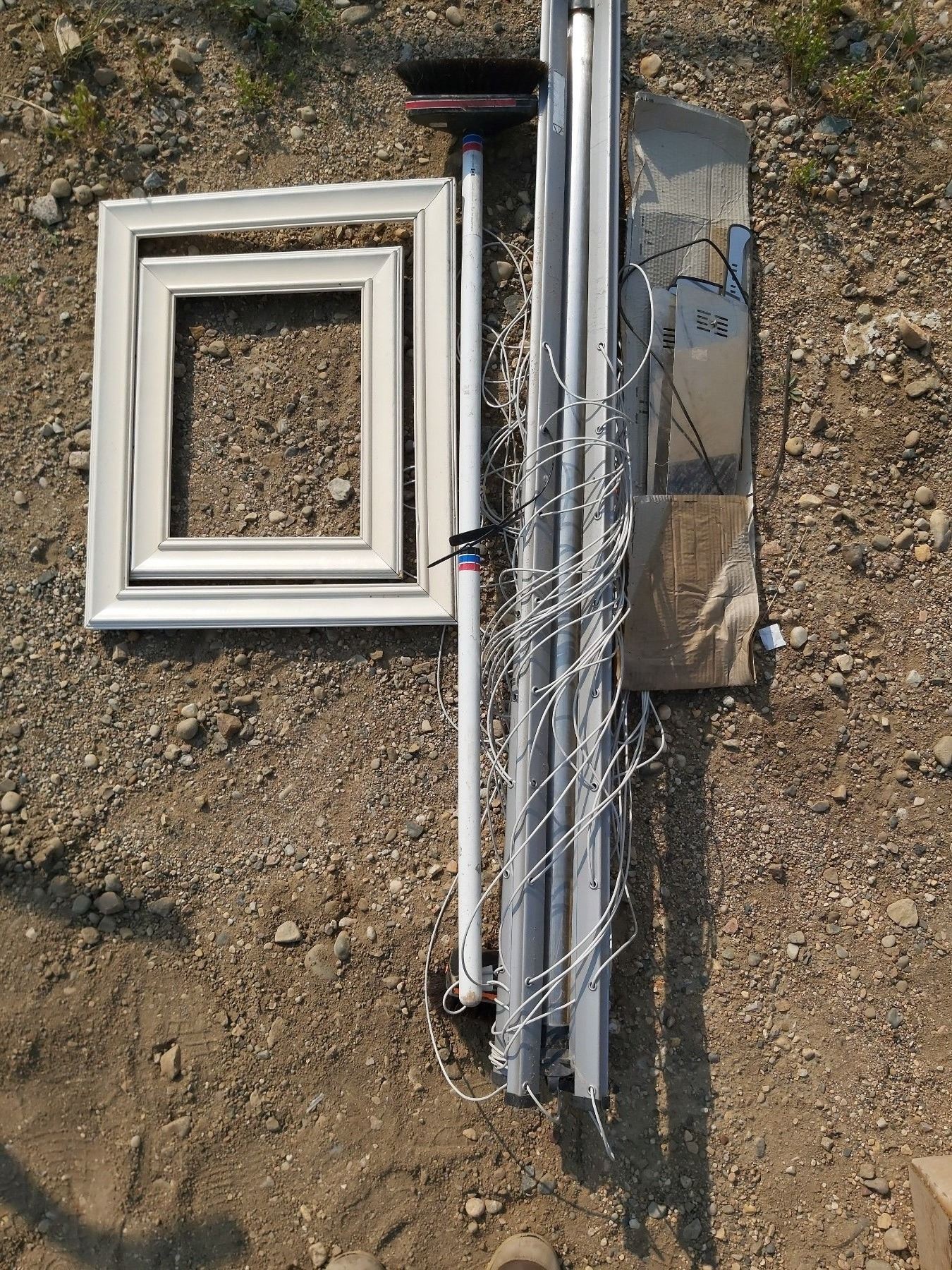 Lot of misc. household (Rails, wires, mirror, push broom)