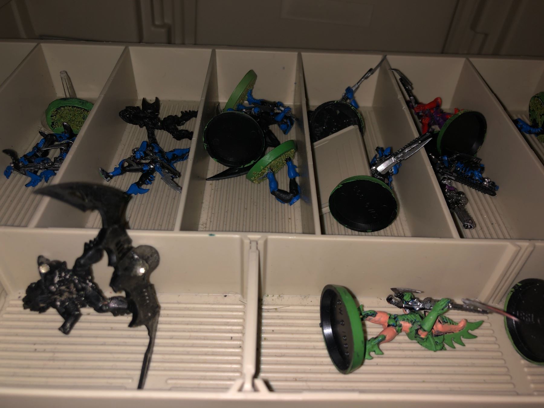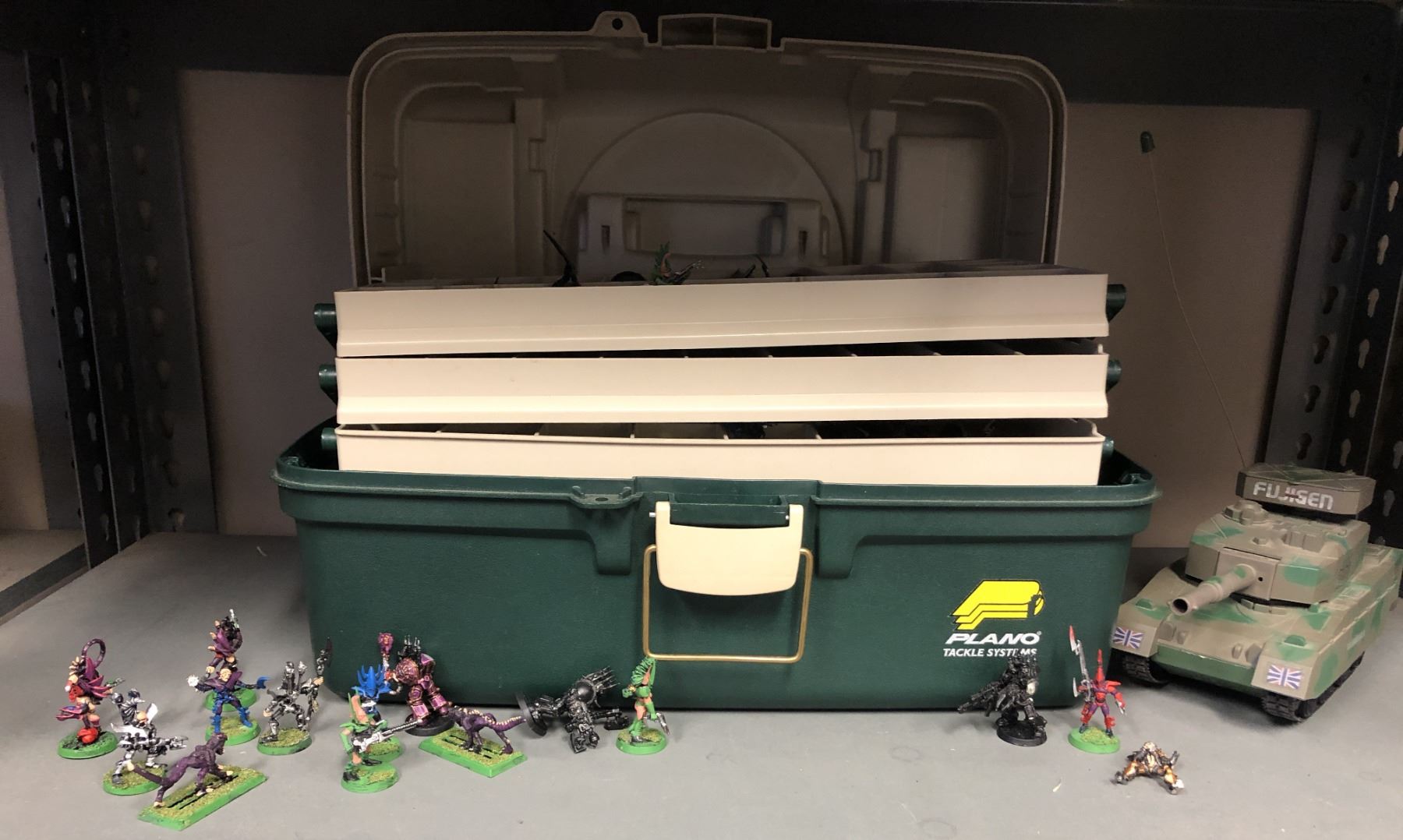 Lot of misc miniature figurines, Plano Tackle System case, Fujigen army tank