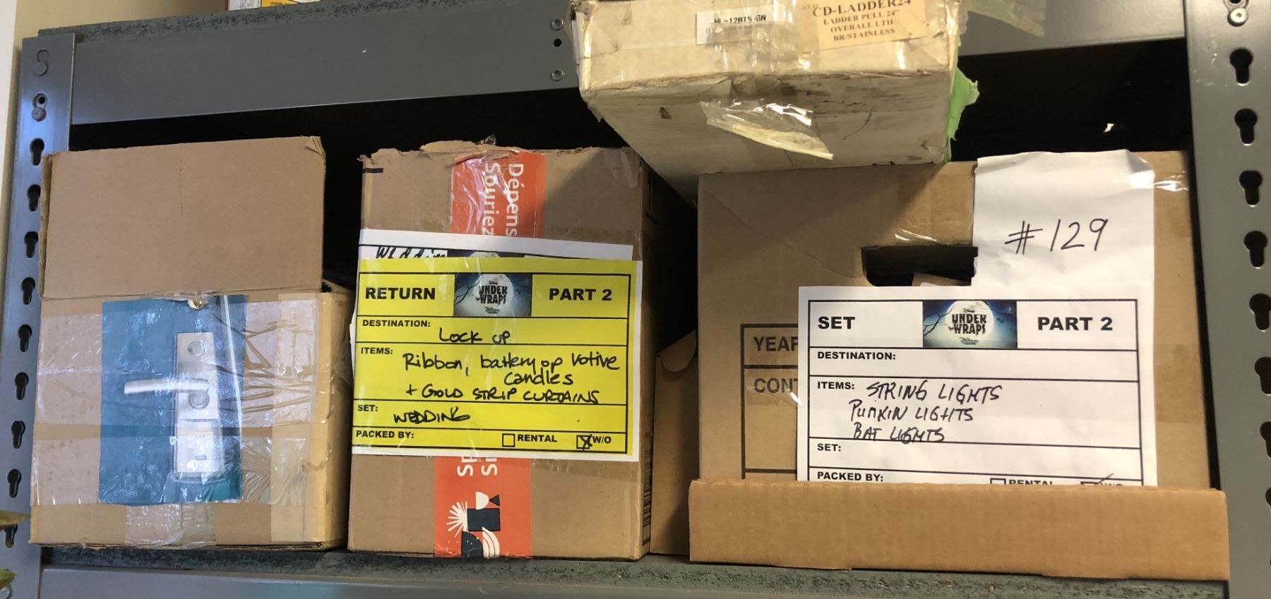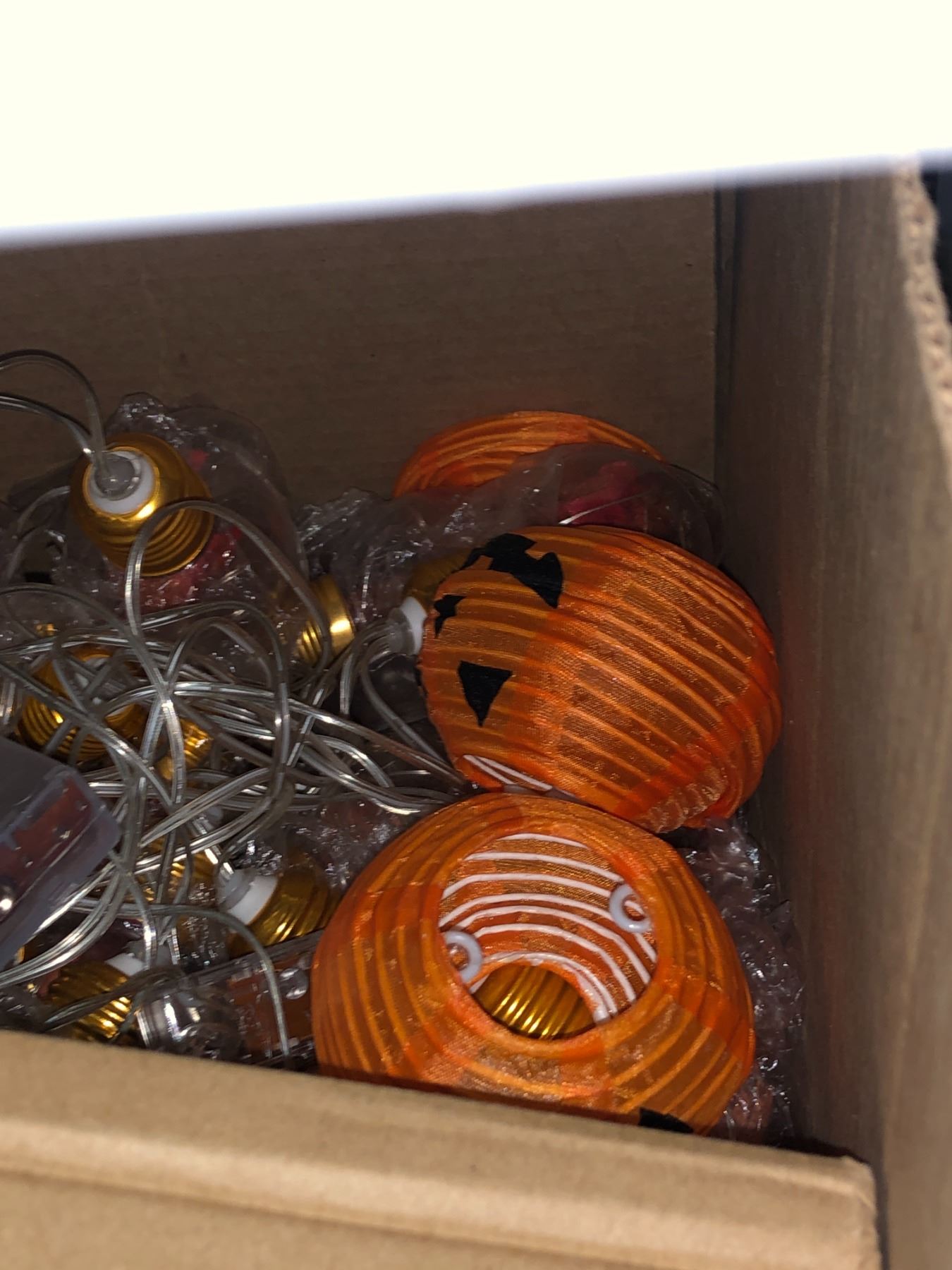 Lot of misc pumpkin string lights, ribbon, battery candles, gold strip curtains, door handles, etc...