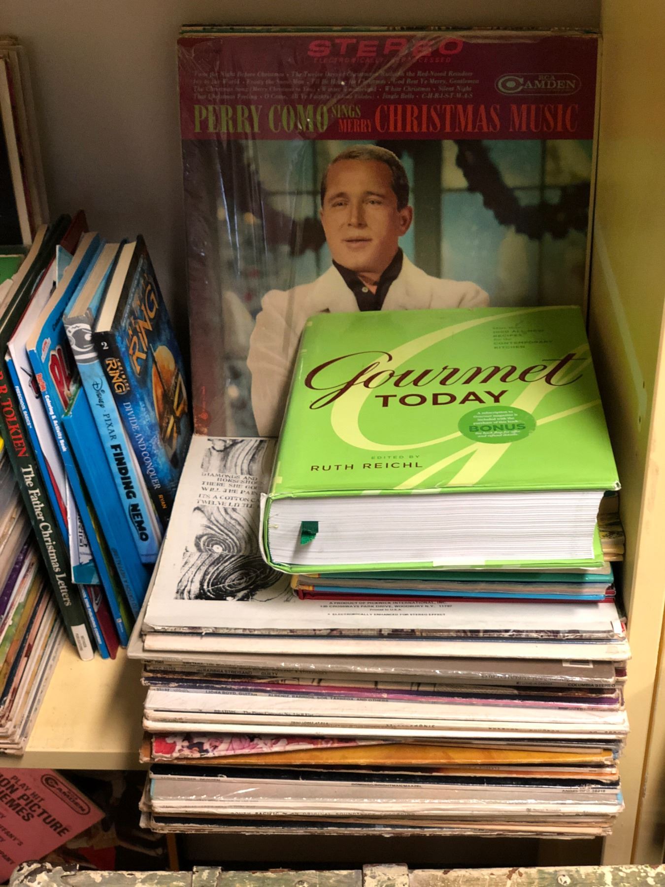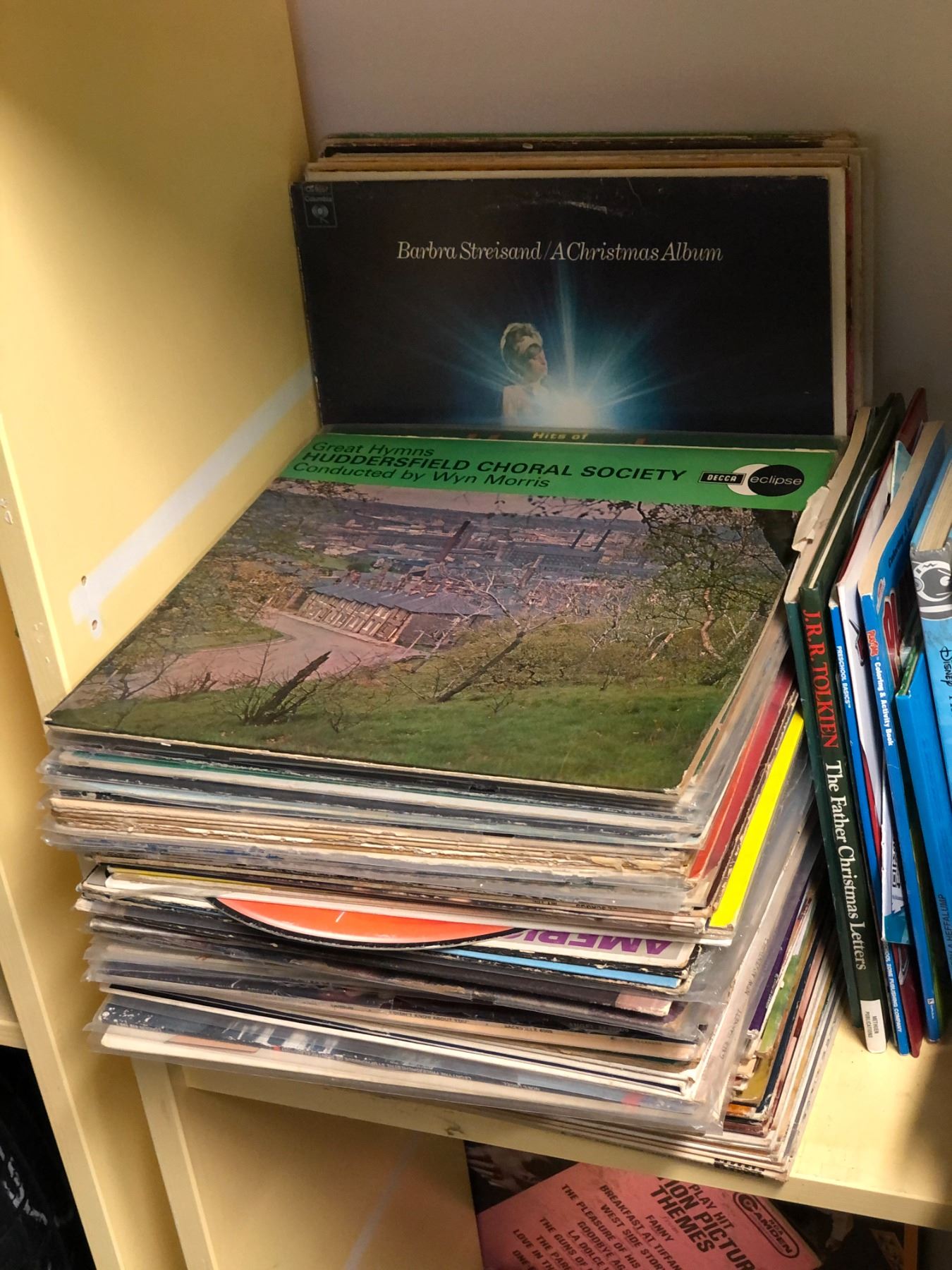 Lot of misc record covers (no records) and books