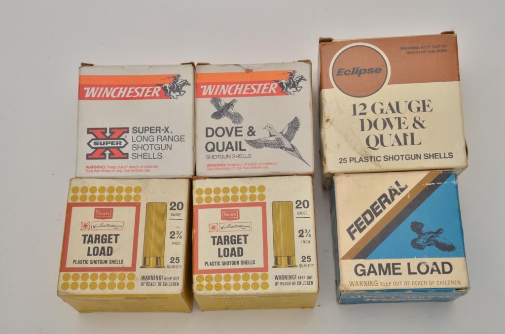 Lot of misc. shotgun ammo including 13 boxes of 12 gauge, some partials; 7 boxes of 20 gauge, some partials, various manufacturers. Est.: $75-$125.