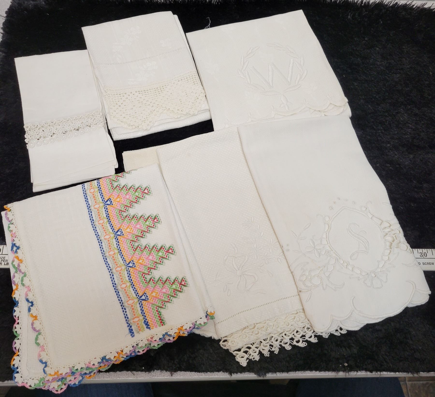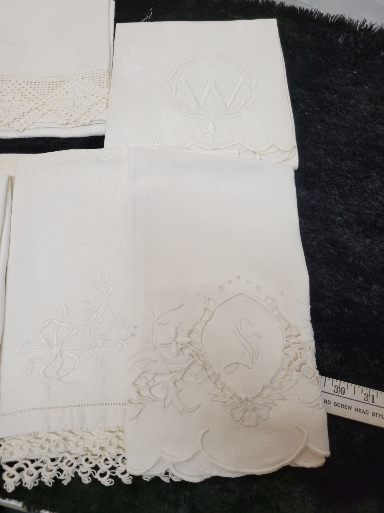 Lot of monogrammed and hand trimmed washstand towels (6)
