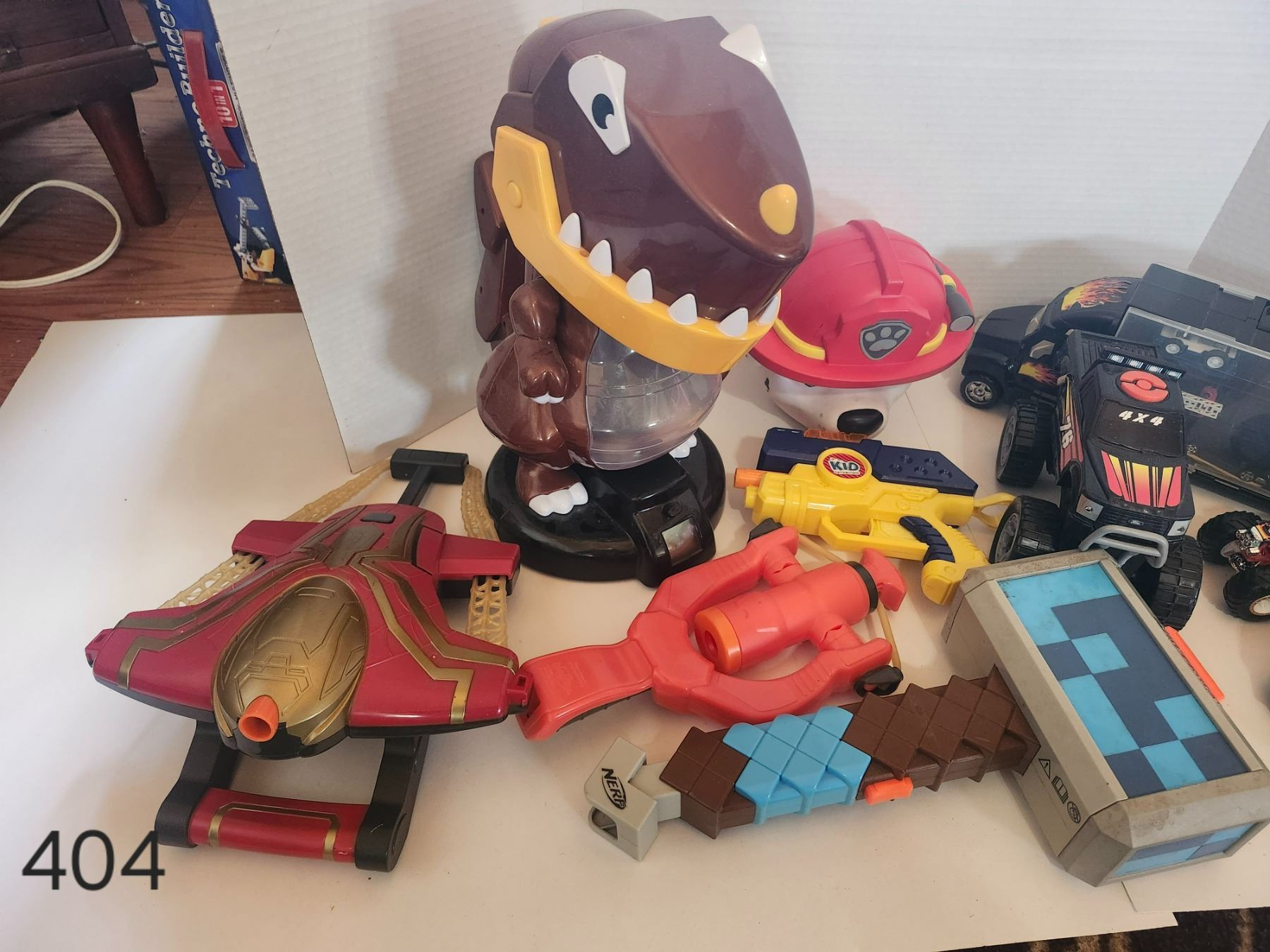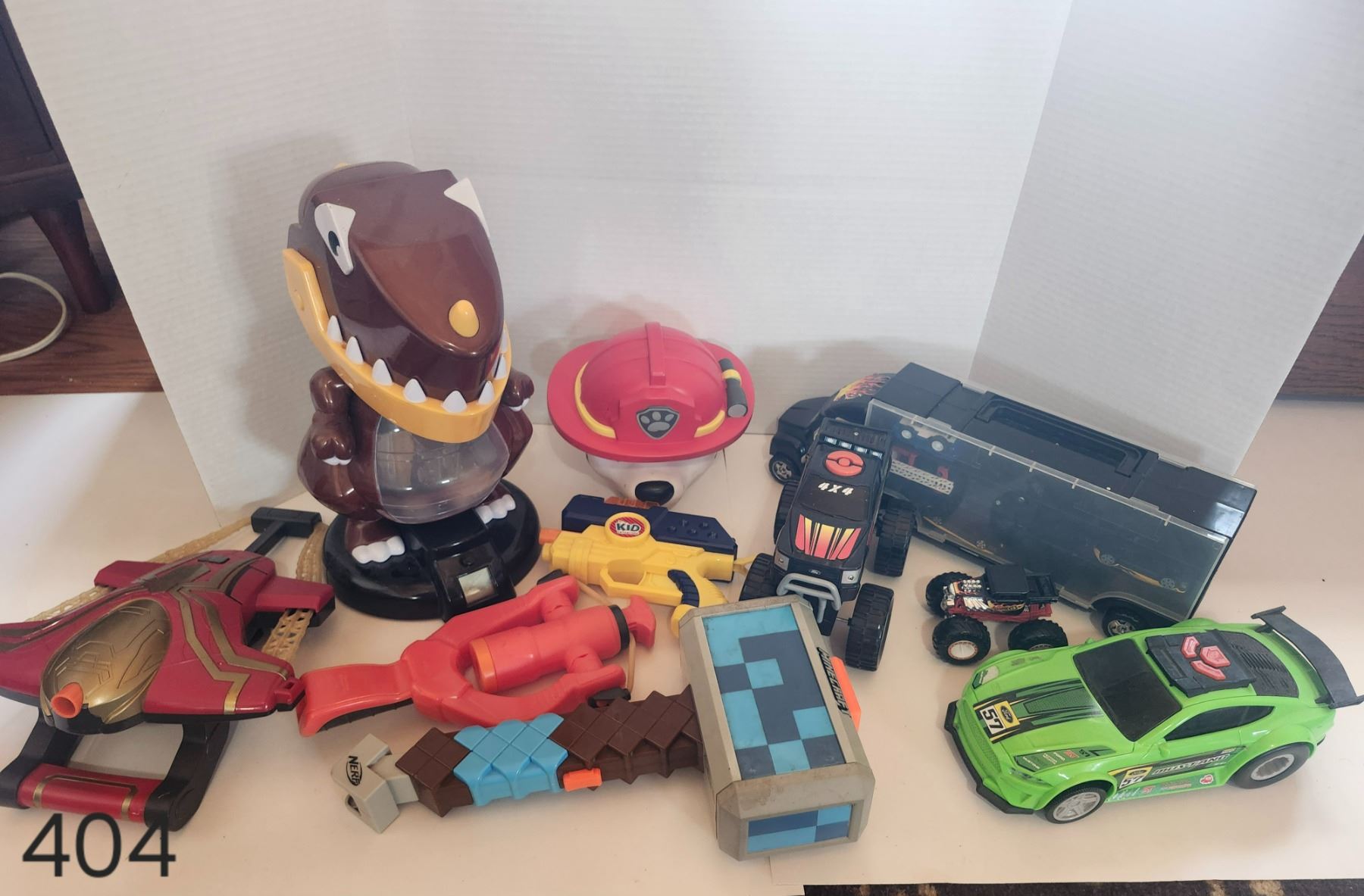 Lot of nerf guns, toy trucks, mini sticks and inflatable punching bag