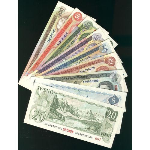 Lot of nine notes Multi-Color Issues Specimen notes BC-46a,47a, 48a, 49a, 50a, 51a, 52a, 53a, 54a. Number 661. Notes are Unc.