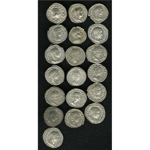 <B>Lot of nineteen Severan period denarii.</B></I> Includes: Septimius Severus (3) // Julia Domna (2) // Caracalla (3) // Geta (2) // Julia Maesa // Severus Alexander (4) // Julia Mamaea (2) // Maximinus I Thrax // Gordian III. Average VF. Nineteen (19) coins in lot.