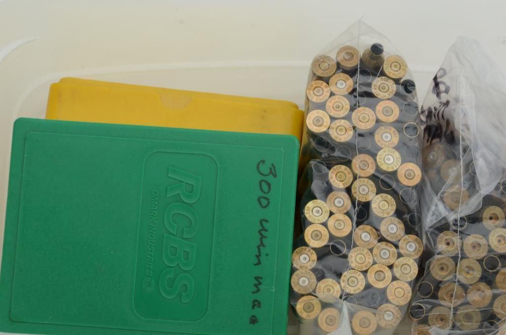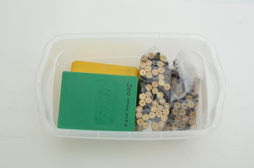 Lot of over 100 brass cases for .300 Win. Mag. plus a set of RCBS dies for .300 Win. Mag. Est.: $50-$75.