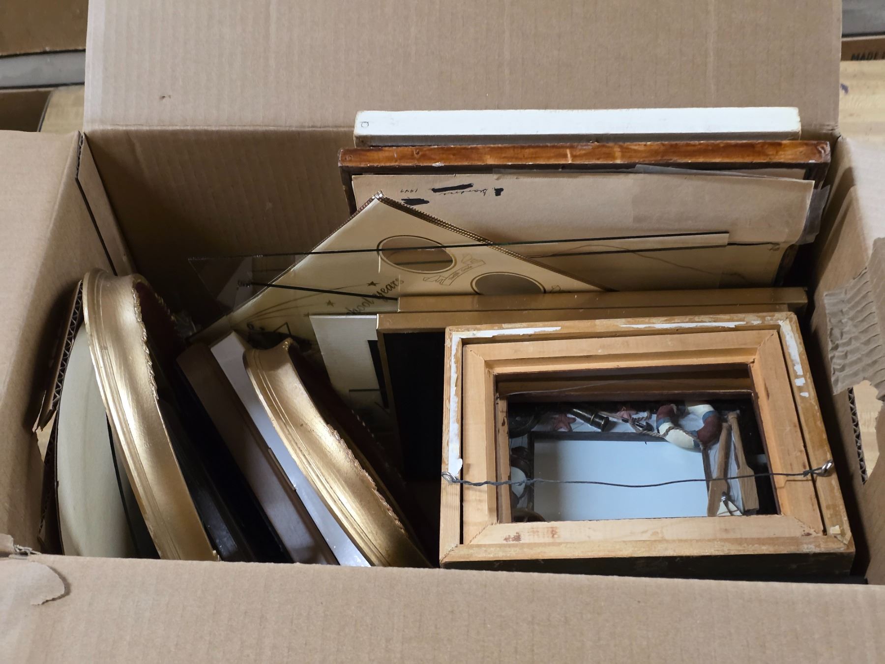 Lot of picture frames and glass