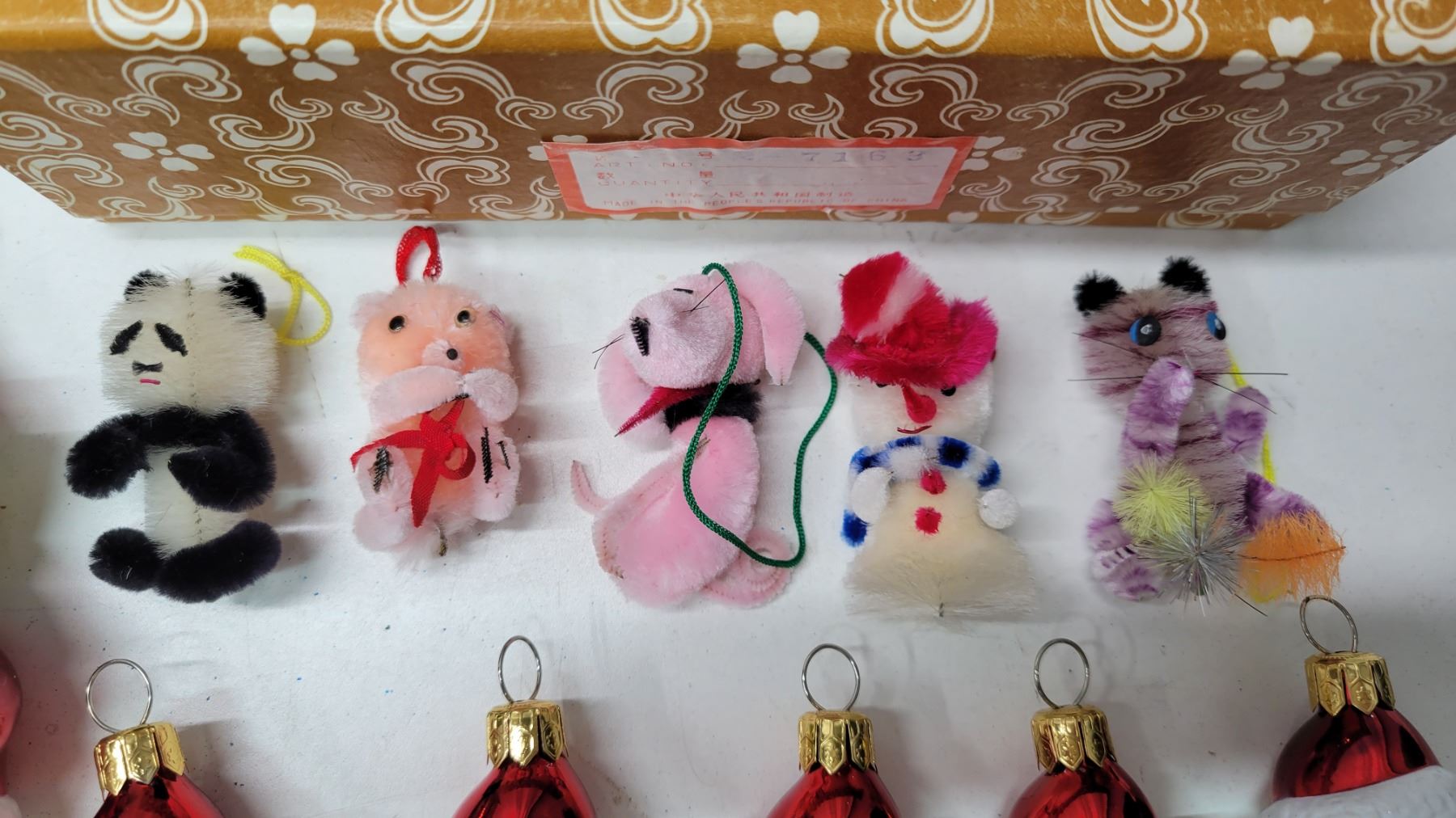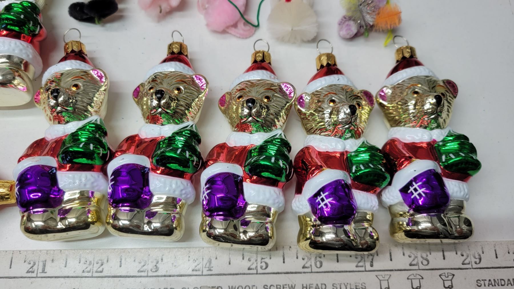 Lot of plastic Santa Bears and box of pipe cleaner creatures