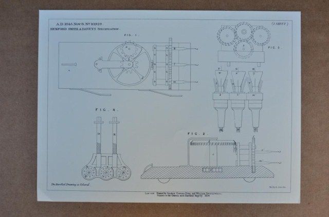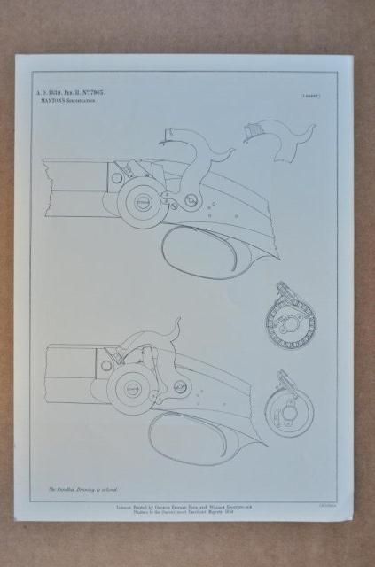 Lot of reprints of gun patents and designs for English arms circa 1850’s. Twenty-five (25) pieces all in good condition. Measuring approx. 20”x32” probably fifty (50) years old or older. Good condition with some normalaging. From the Robert E. Petersen Estate. Est.: $75-$150