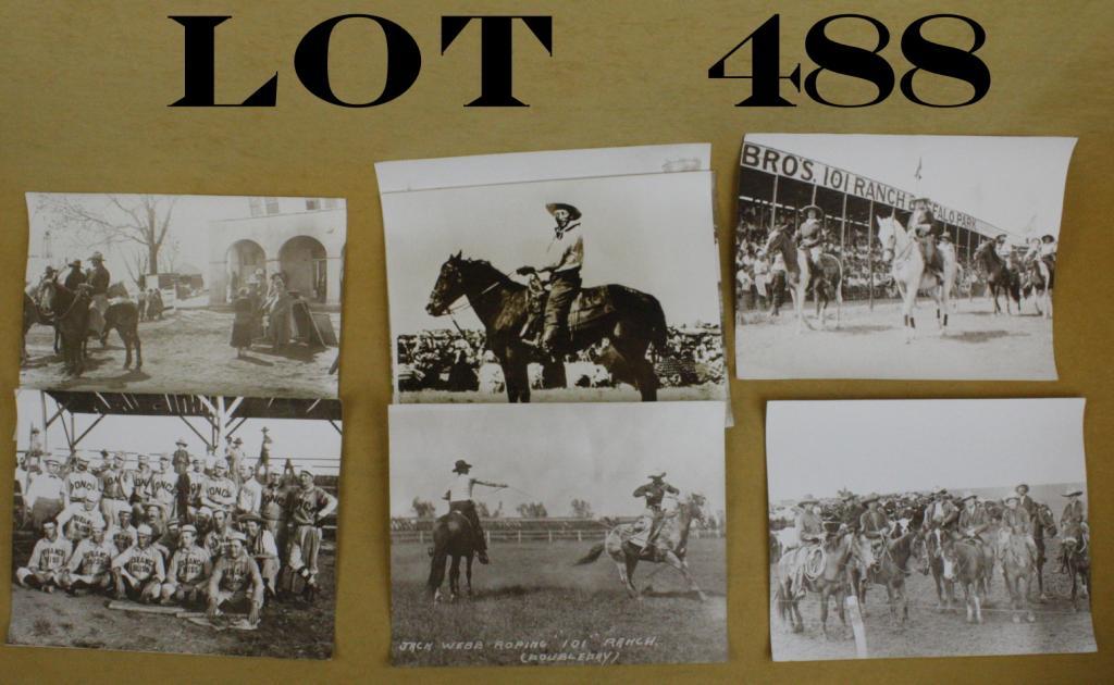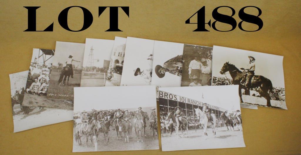 Lot of sepia tone photos of 101 Ranch and performers approx. 10-7/8” in height by 13-3/4” in width, stamped on back, “Original photos protected by copyright laws. Not to be reprinted.” 11 total pictures. Est.:$100-$300