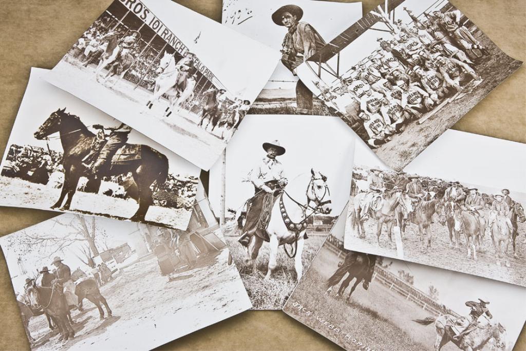 Lot of sepia tone photos of 101 Ranch and performers approx. 10-7/8” in height by 13-3/4” in width, stamped on back, “Original photos protected by copyright laws. Not to be reprinted.” 11 total pictures. Est.: $100-$300