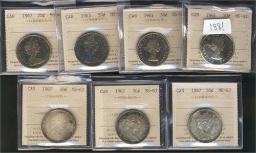 Lot of seven ICCS MS63 graded coins. Includes 1961 (2), 1965, 1967 (4). All coins are nicely toned.