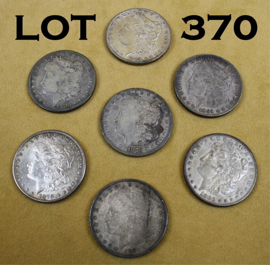 Lot of seven Morgan dollars, all circulated to AU. Dated 1879 to 1921. Est: $75 - $175