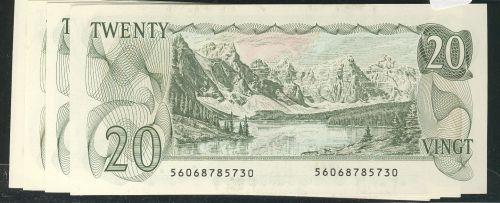 Lot of six 1979 $20 notes. BC-54bi "BABN" Crow-Bouey. All choice uncirculated!
