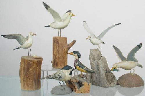 Lot of six miniatures, 4 gulls, a wood duck and a chickadee from a CT Estate. (decoy)