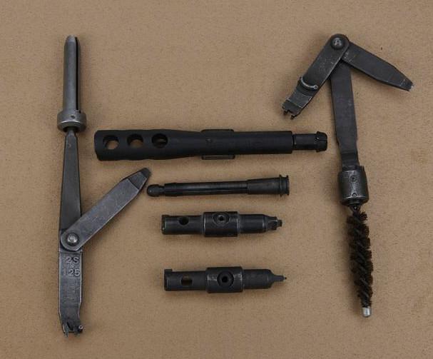 Lot of six tools for M1-Garands and M14’s, U.S. military issue in oak display case with brass hinges. Est: $100 - $200