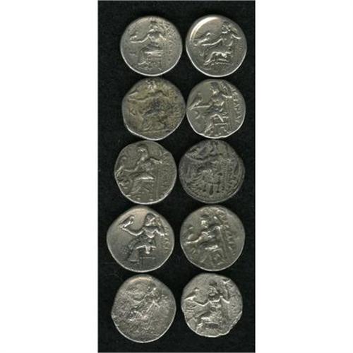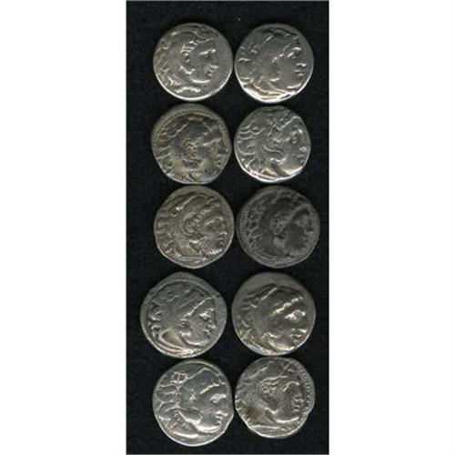 <B>Lot of ten Macedonian drachms.</B></I> Includes: Alexander III (9) // Philip III. <B>Average Fine</B></I> to <B>VF,</B></I> a few porous.<BR><BR><b>Shipping:</b> Coin/Currency (<a target="_blank" href="http://www.heritageauctions.com/common/shipping.php">view shipping information</a>)
