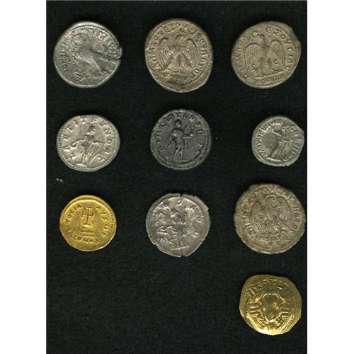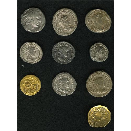 <B>Lot of ten miscellaneous AV and AR coins.</B></I> Includes: Ptolemaic Kingdom. Ptolemy XII or Cleopatra VII. AR tetradrachm. Year 30 of Ptolemy or year 1 of Cleopatra // Syria, Seleucis and Pieria. Antioch. Philip I. AR tetradrachm (2) // Antioch. Philip II. AR tetradrachm // Severus Alexander. AR denarius // Philip I. AR double denarius (2) // Philip II. AR double denarius // Heraclius. AV solidus // Andronicus II, with Michael IX. AV hyperpyron. Average Fine to VF, the hyperpyron crude as issued.
