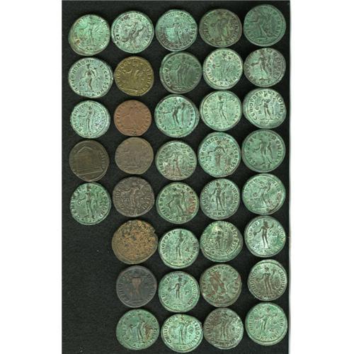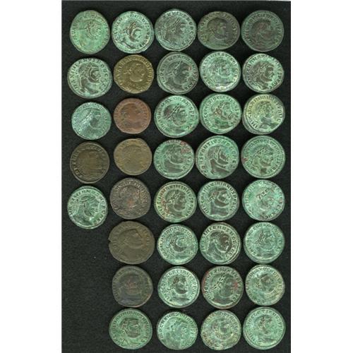 <B>Lot of thirty-seven large folles.</B></I> Includes: Diocletian (7) // Maximianus (8) // Galerius (14) // Constantius I (6) // Maxentius // Maximinus II Daia. Average Fair to VF, most coins from a single hoard and very encrusted.