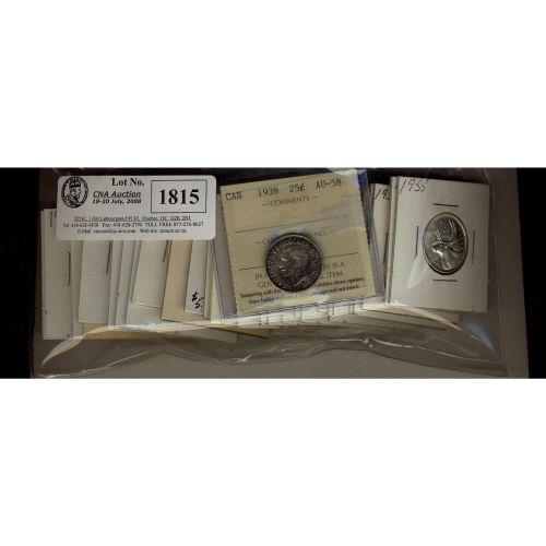 Lot of thirty-three 25 cents, includes 1938, 1955 (2), 1956 (6), 1957 (5), 1958 (10), 1959, 1960 (3), 1961 (3), 1962 (2). Grades vary from AU-55 to MS64.