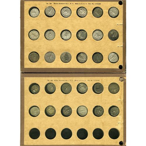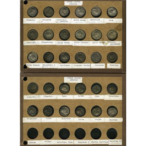 <B>Lot of thirty toned Roman AR.</B></I> Includes (all denarii unless otherwise indicated): Augustus. Comet // Tiberius. Quadriga. Fourree // Nero // Galba // Otho // Vitellius // Vespasian // Titus // Domitian // Nerva // Trajan // Hadrian // Commodus // Crispina // Septimius Severus // Julia Domna // Caracalla // Geta // Macrinus // Elagabalus // Julia Paula // Julia Soaemias // Julia Maesa // Severus Alexander // Julia Mamaea // Maximinus I Thrax // Gordian III // Herennius Etruscus. Double denarius // Salonina. Double denarius // Severina. AE denarius, silvered. Average Fine to good VF, for the most part all nicely toned. Includes several better emperors and types.