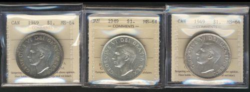 Lot of three 1949 ICCS MS64, one is brilliant the two others are attractively toned