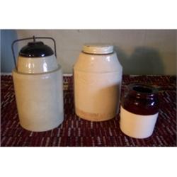 Lot of three, Macomb canner, "The Weir" canner and small crock