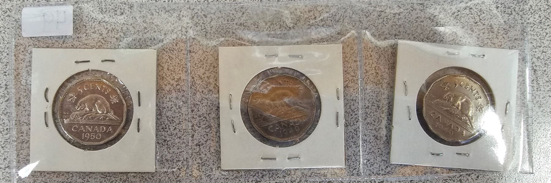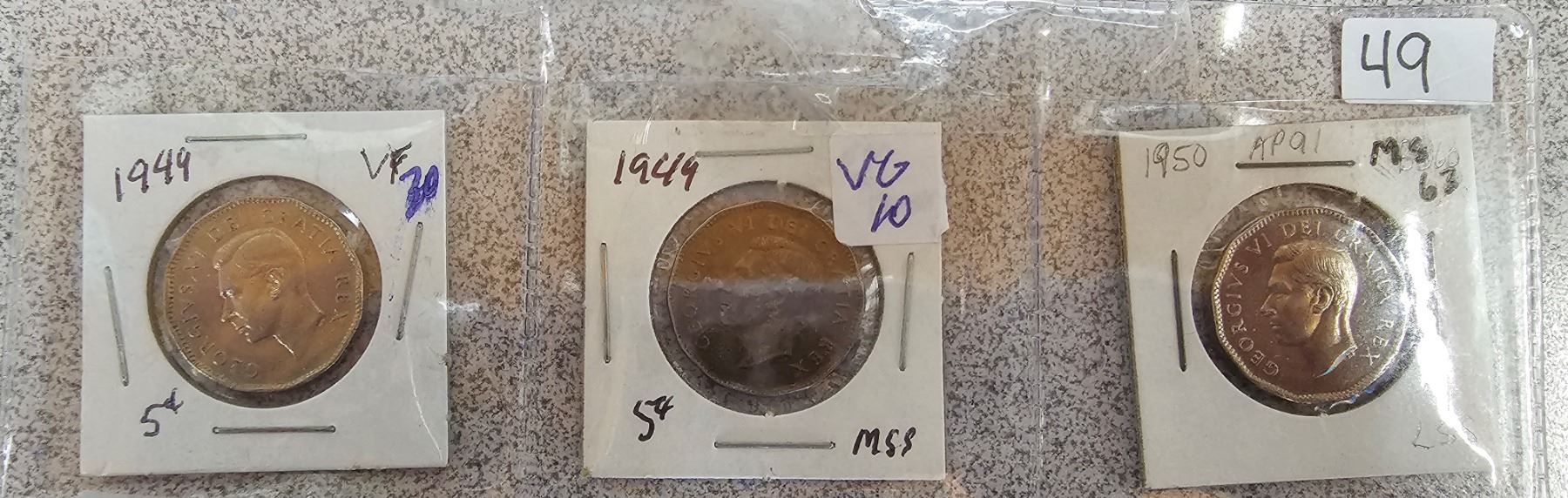 Lot of three Canada 5¢ - 1949 X 2 (VF-30, VG-10), 1950 MS-63