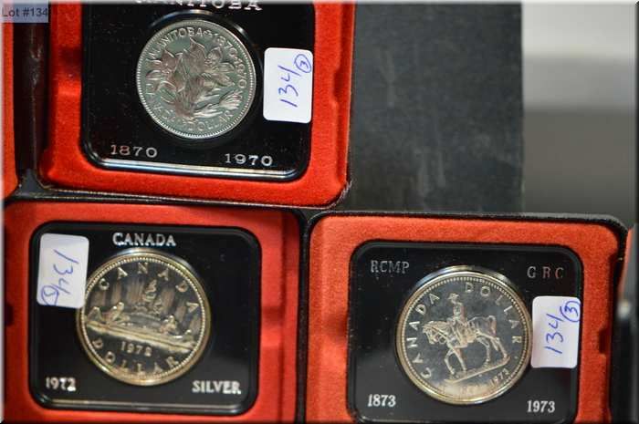 Lot of three Canadian  dollars, 1973, 1970, 1972, two silver.
