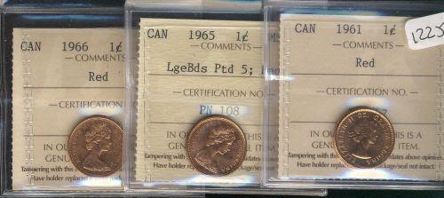 Lot of three ICCS red pennies. Includes a 1961 MS63, 1965 Type 4 MS64, 1966 MS63.