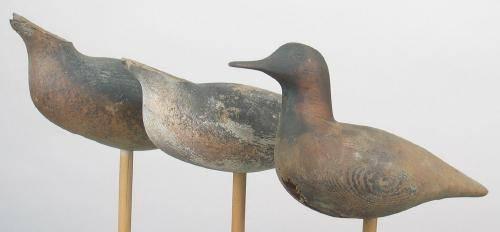 Lot of three Mason Factory shorebird relics. Two with no heads and the third with a replaced head. No Paint. (decoy)