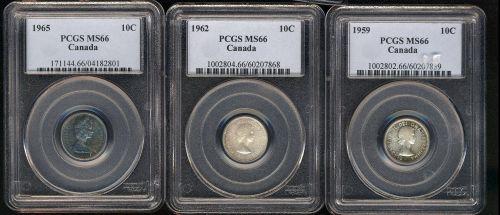 Lot of three PCGS MS66 graded coins. Includes a 1959, 1962 and a 1965. All three pieces are attractively toned.