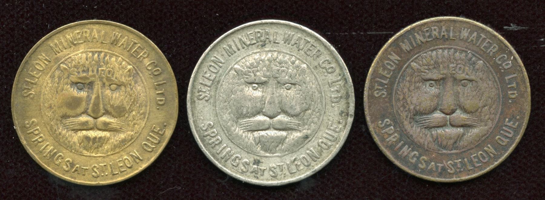 Br. 618, St. Leon Water, 1890, St. Leon, brass, VF; Same as previous, EF; Br. 618, St. Leon Water, 1890, St. Leon, WM, EF. 3 Pcs.