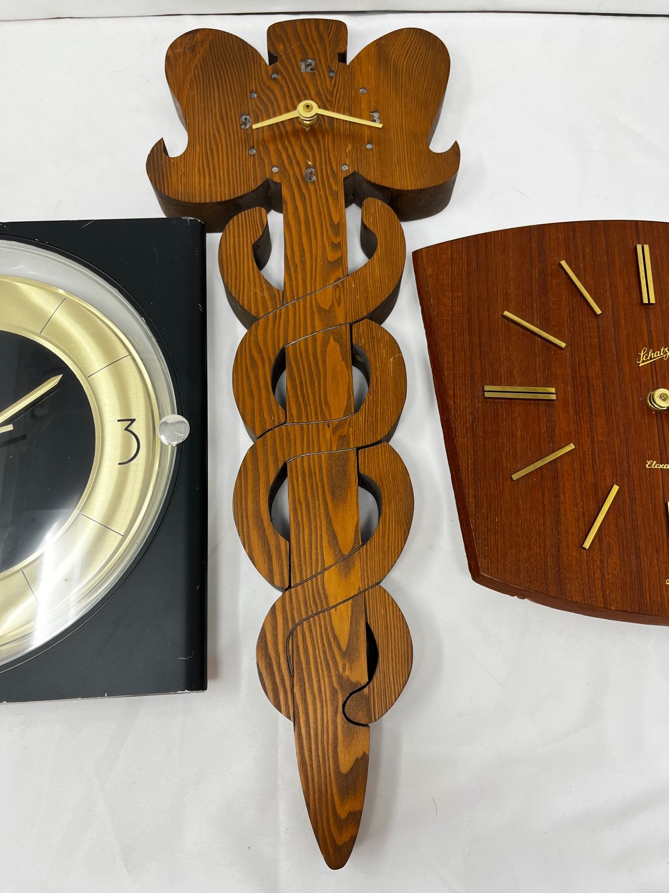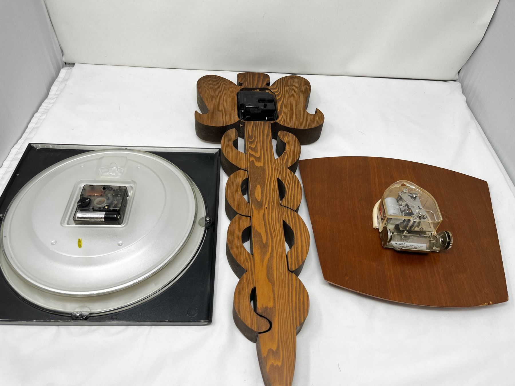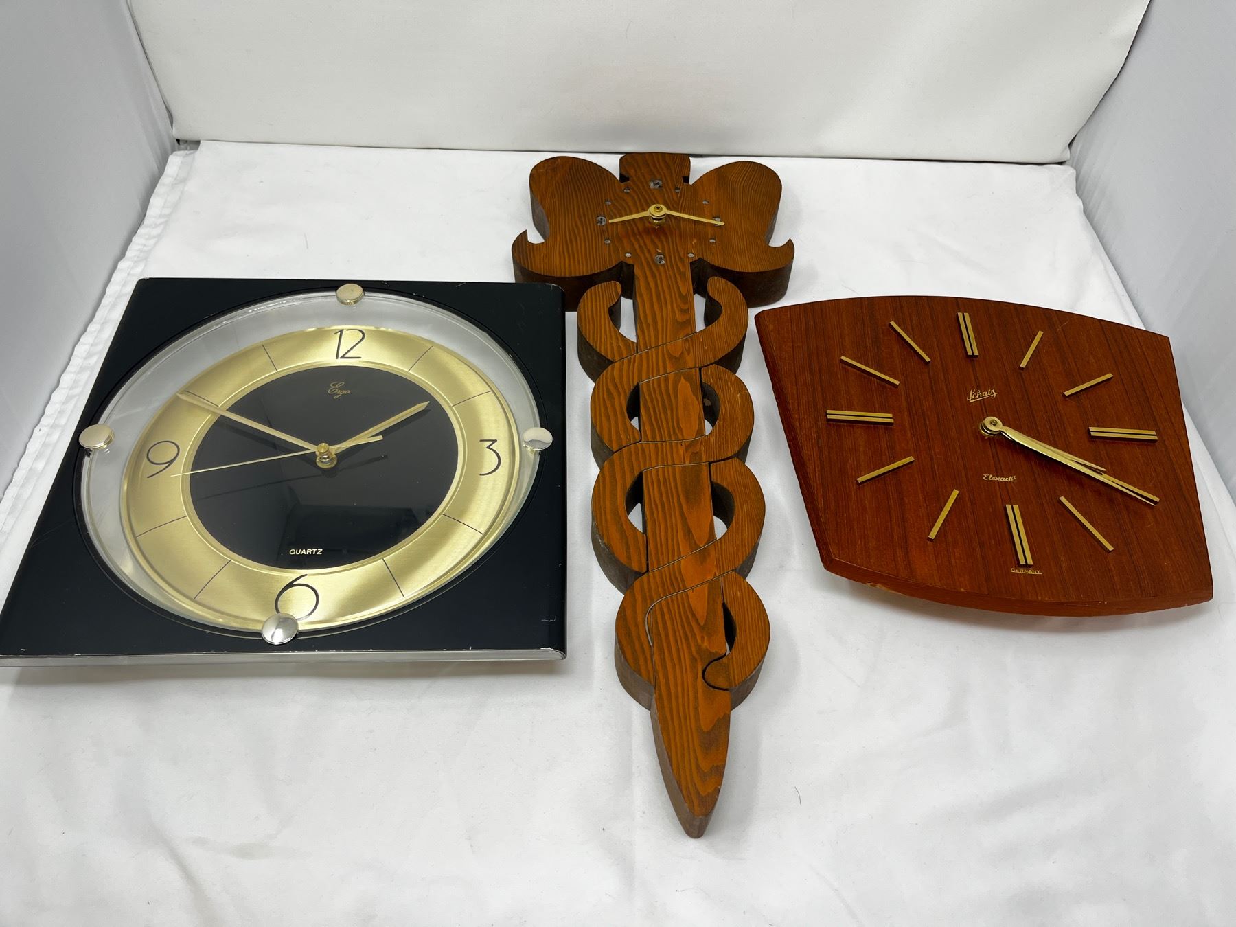 Including Caduceus (medical symbol) cut out from wood, schatz wood, and Ergo modern style clock.