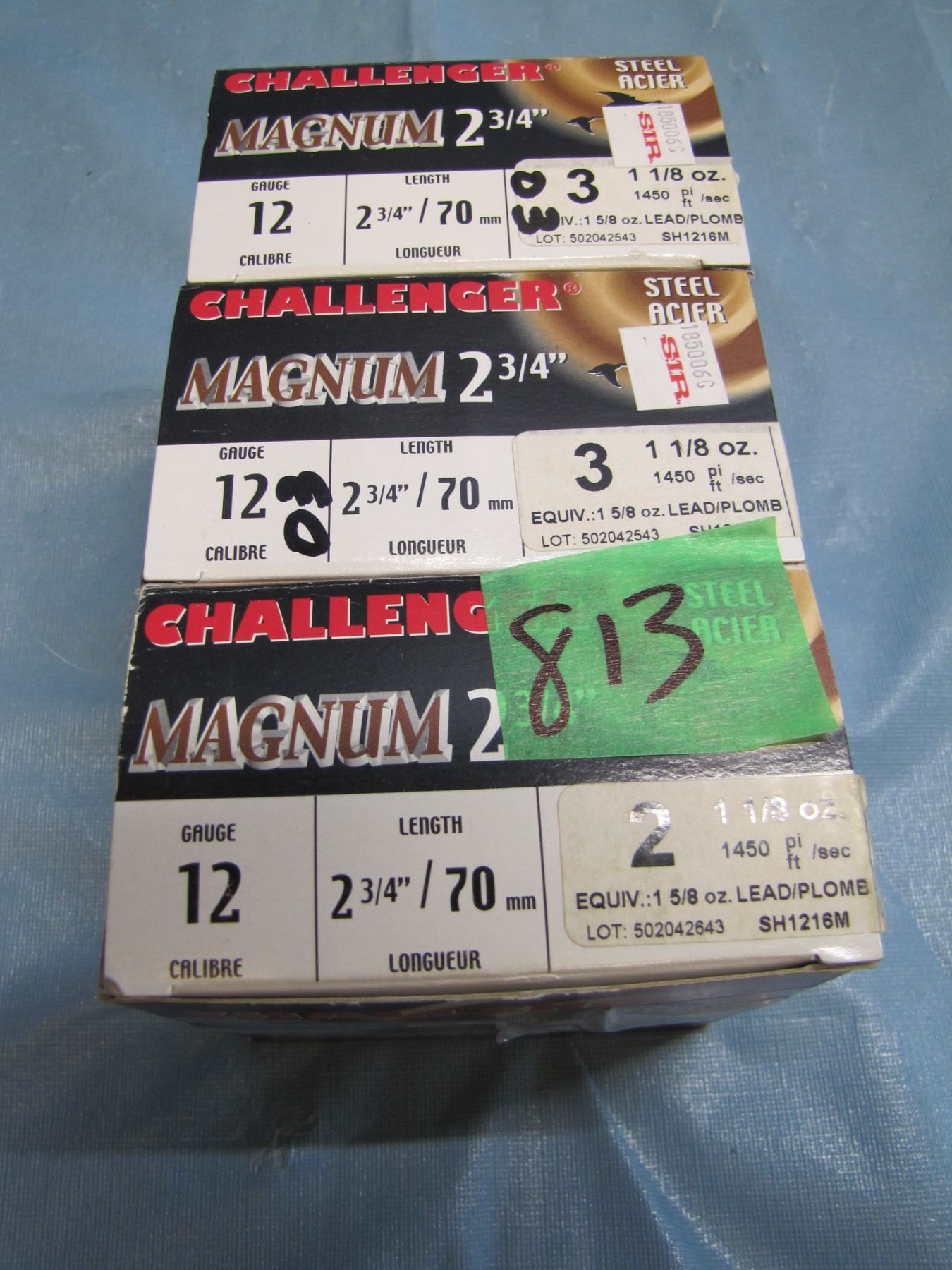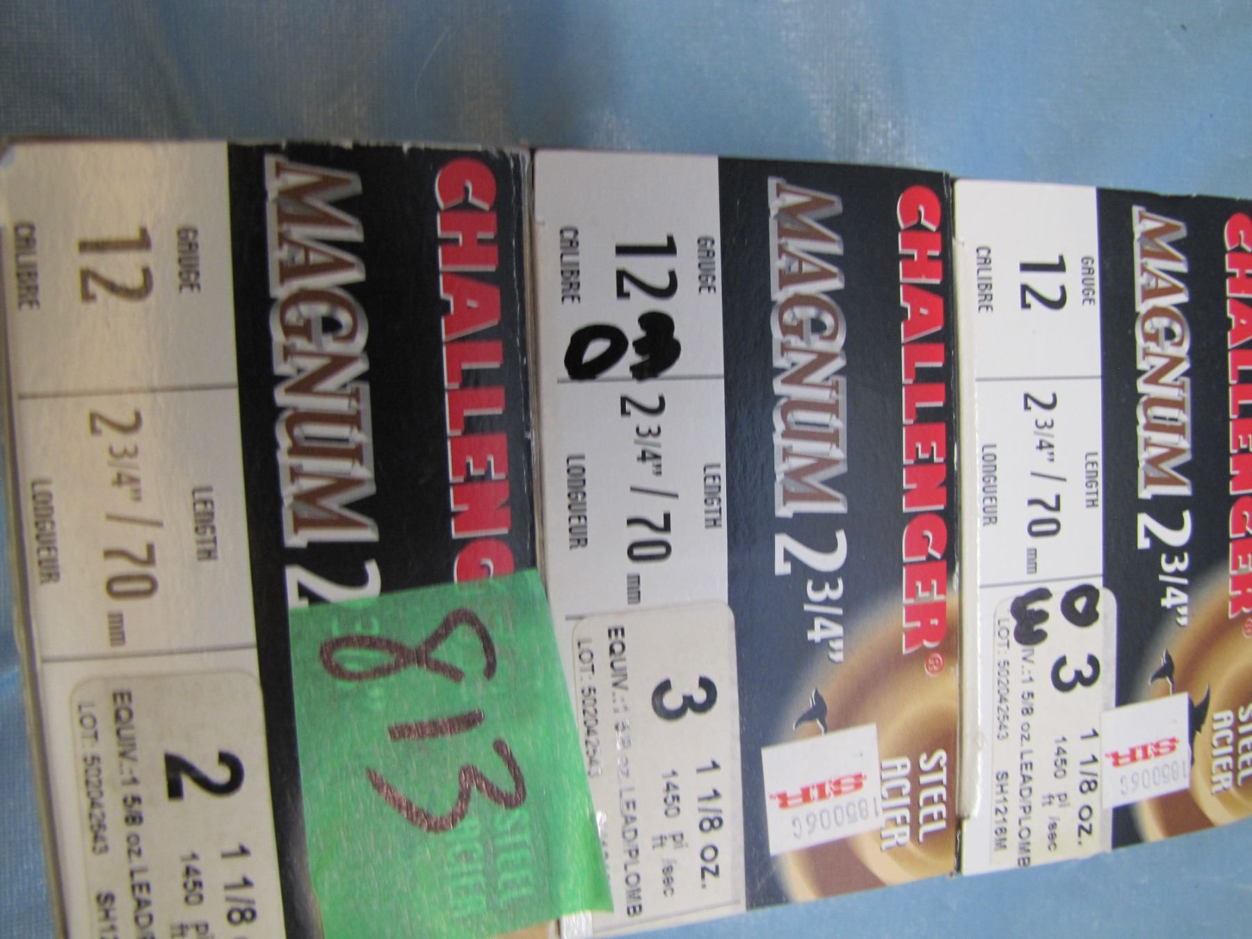 Lot of three boxes challenger magnum 12 gauge two and three quarter inch shotgun shells