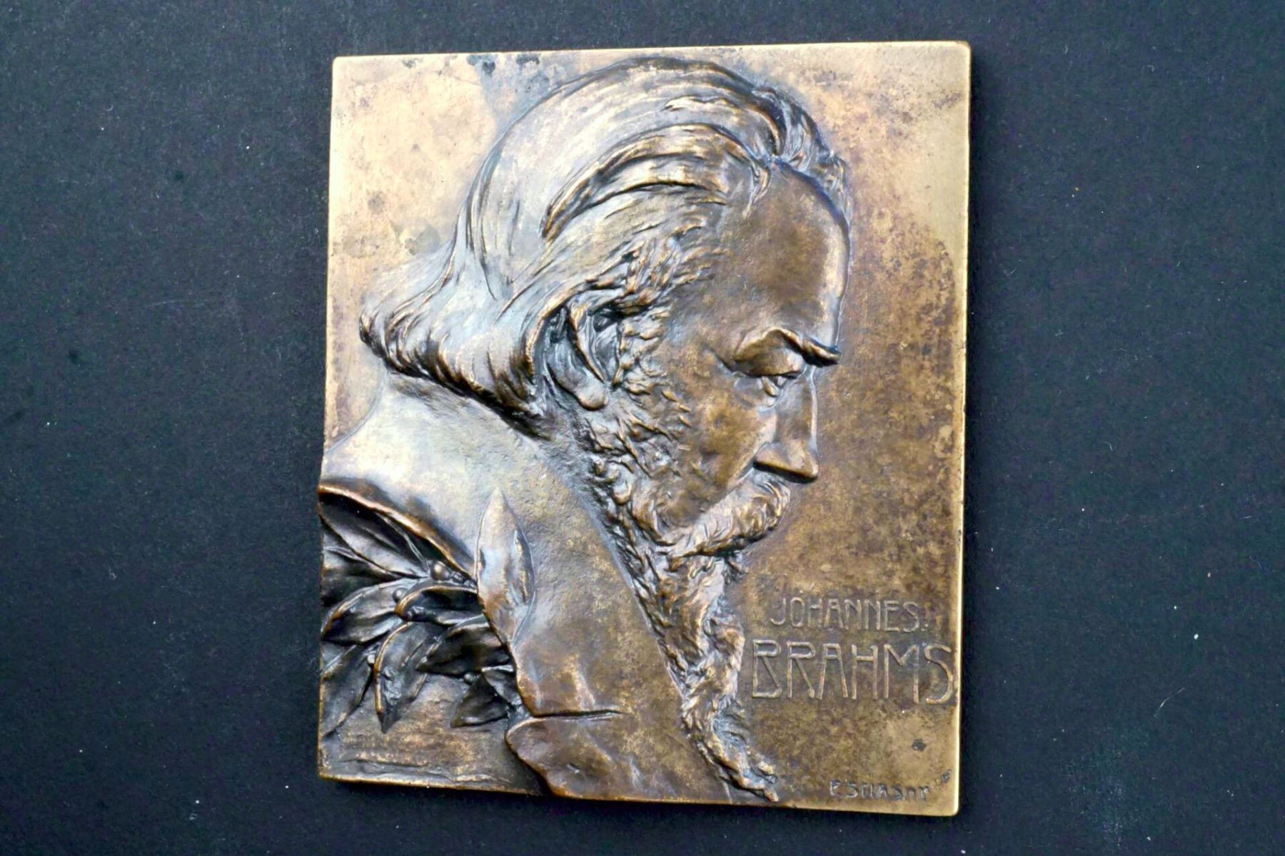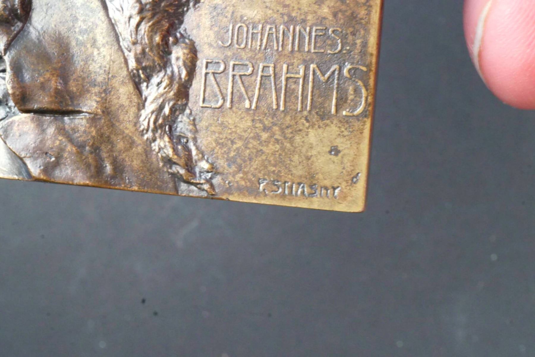 Lot of three bronze Uniface Rectangular Plaques of Brahms, Handel, J.S. Bach