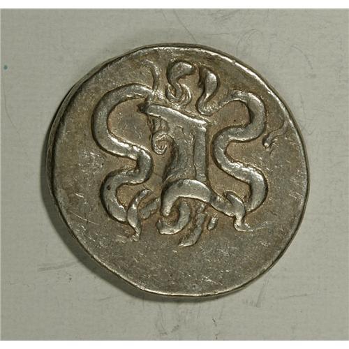 <B>Lot of three cistophoric tetradrachms.</B></I> All types: Serpent crawling from cista mystica; all within wreath / Two serpents coiled about bow-case. Includes: Pergamon (2) // Tralles. <B>Average Fine.</B></I><BR><BR><b>Shipping:</b> Coin/Currency (<a target="_blank" href="http://www.heritageauctions.com/common/shipping.php">view shipping information</a>)