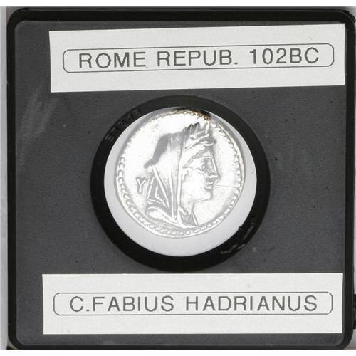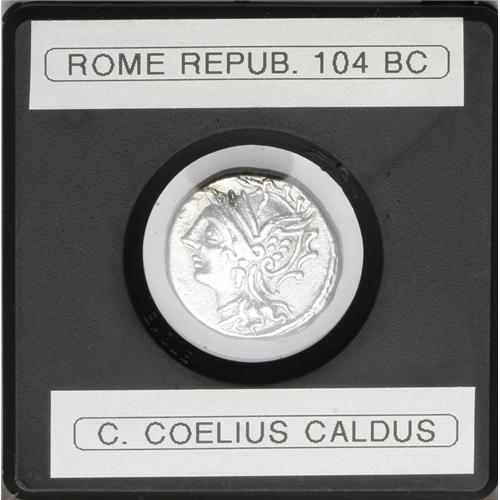 <B>Lot of three denarii.</B></I> Includes: L. Cupiennius. 147 B.C. Crawford 218/1 // C. Coelius Caldus. 104 B.C. Crawford 318/1b // Fabius C. f. Hadrianus. 102 B.C. Crawford 322/1a. Average VF, all cleaned.