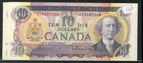 Lot of three different signature 1971 $10 notes. BC-49b Bouey-Rasminski, BC-49ci Lawson-Bouey, BC-49d Crow-Bouey. AU to UNC.