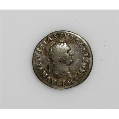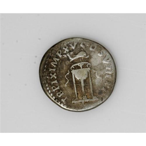 <B>Lot of three early Imperial denarii.</B></I> Includes: Augustus. Consular robes and quadriga. Fine // Tiberius. Tribute Penny. Good Fine // Titus. Dolphin on tripod. Near Fine. Three (3) coins in lot.