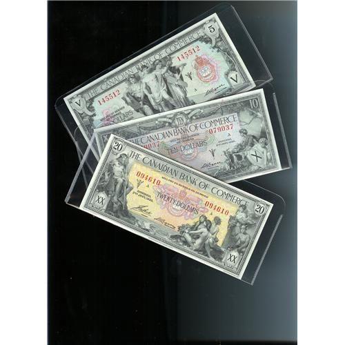 Lot of three notes. Canadian Bank of Commerce 1935 $5, $10, $20. 75-18-02/06/10. All three note