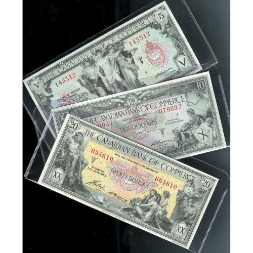Lot of three notes. Canadian Bank of Commerce 1935 $5, $10, $20. 75-18-02/06/10. All three notes are original Unc. To Choice Unc.