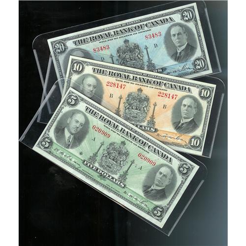 Lot of three notes. The Royal Bank 1935 $5, $10, $20