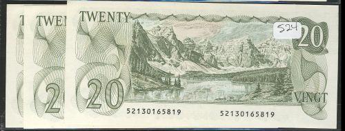 Lot of three sequential 1979 $20 notes. BC-54c Thiessen-Crow CBN. All choice uncirculated!