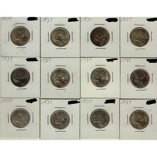 Lot of twelve 1937 25 cents; all AU-50 to MS60, some pieces are nicely toned