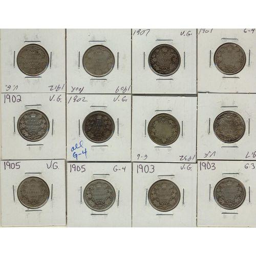 Lot of twelve 25 cents; Includes 1902 (2), 1903 (2), 1905 (2), 1907 (2), 1909, 1912, 1917, 1932. All Good-4