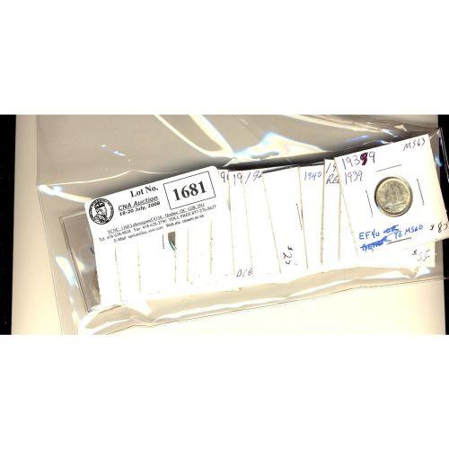 Lot of twenty 10 cents; Includes 1939 (2), 1940RE-ENG, 1940 (4), 1941 (2), 1942, 1943, 1945, 1947ML, 1951, 1965 (2), 1966 (2), 1967, 1968 silver, All EF-40 to MS-60