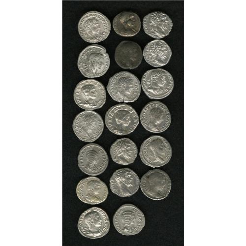 <B>Lot of twenty Severan period denarii.</B></I> Includes: Septimius Severus (5) // Julia Domna (2) // Caracalla (2) // Geta // Elagabalus (4) // Julia Maesa (2) // Severus Alexander (4). Average Fair to near VF. Twenty (20) coins in lot.