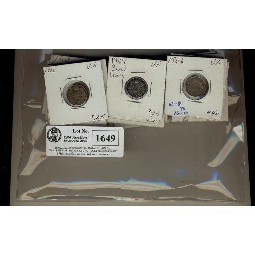 Lot of twenty-nine Edwardian 10 cents; Includes 1906 (8), 1907 (3), 1909 BL, 1910 (15), 1913SML (2), All VG-8 to VG-10