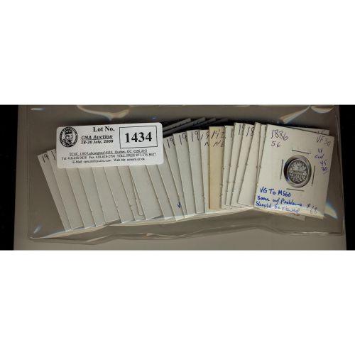 Lot of twenty-two Five Cents, Includes 1886, 1891, 1893, 1896, 1901, 1906, 1926 Near 6, (2), 1928, 1929, 1930, 1933, 1934, 1937, 1942, 1944, (2), 1947, 1948 (2), 1950, 1952, VG to MS-60 some with problems, should be viewed.